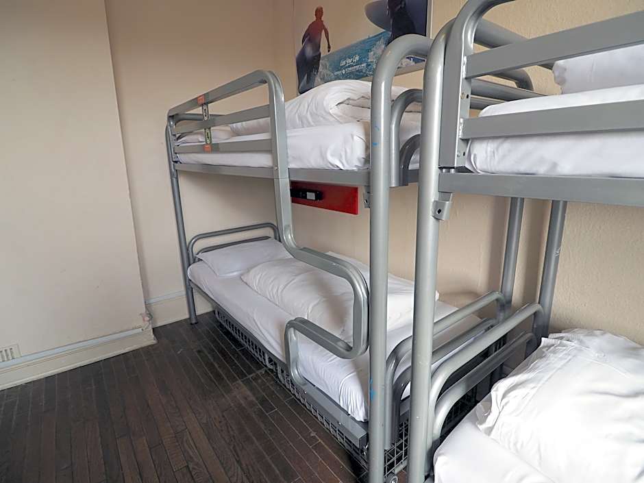 This bright and spacious dormitory room features bunk beds, fresh linen and cages under the bed to store belongings, while bathroom facilities are shared.